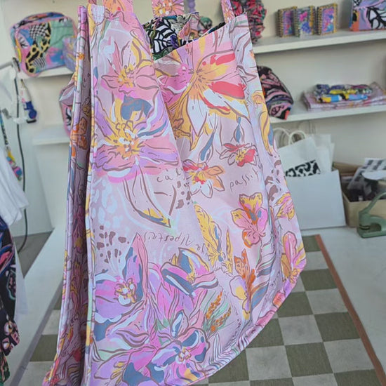 La nueva versión de Tote! Reversible e impermeable en 2 diseños hermosos para llevar a todas partes. Ultra liviano y con bolsillo en ambos lados. Imanes para darle una forma ideal. Ideal para iluminar el día a día y llenarlo de estilo!